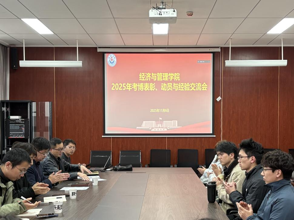 为进一步加强学风建设,表彰先进,凝聚榜样力量,激发硕士研究生考博热情,11月6日下午,经管学院在209会议室召开2025年考博表彰暨2026年考博动员会。学院研究生秘书焦光前,青年博士教师代表刘存京、胡宇轩、高偲毓、马艺鸣,2025年考博学生代表岳昕妤、董莹,以及学院各年级学术型硕士及部分专业硕士研究生参加了会议。会议由李兴开副院长主持。
