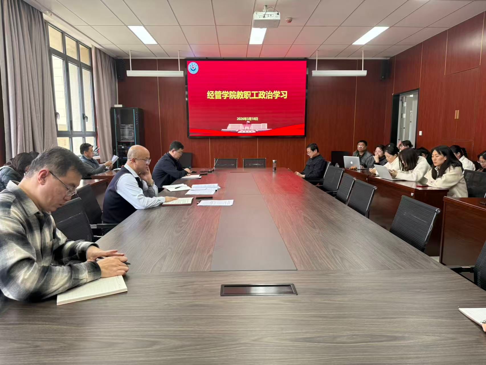 宣讲结束后,付旭书记带领大家集中学习了习近平总书记关于教育的重要论述及高校思想政治工作相关要求。通过专题学习,大家进一步统一思想认识,深刻领会 “为党育人、为国育才” 的根本使命,纷纷表示将把延安精神融入教育教学全过程,以坚定的政治立场和过硬的师德师风履职尽责。
